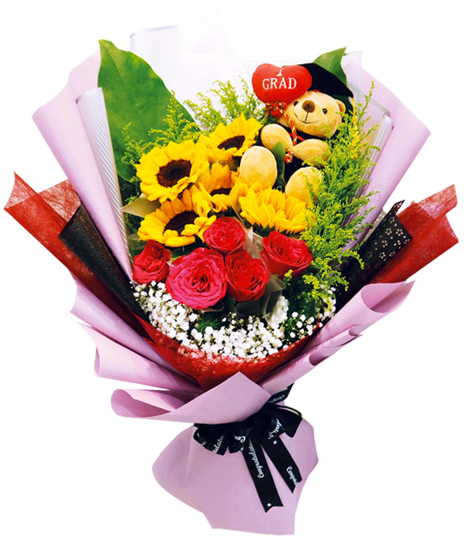 1 Bear + 5 Roses + 5 Sunflowers + Fillers