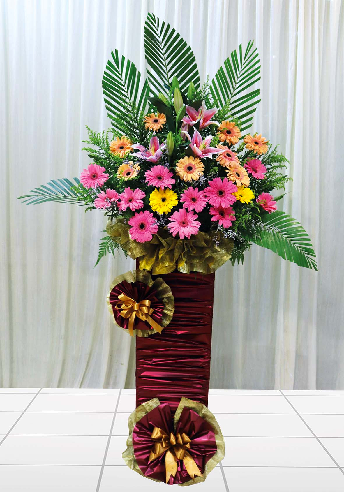 There's nothing like a grand opening stand made with fresh cut flowers to wring in the luck and prosperity and to send best wishes!