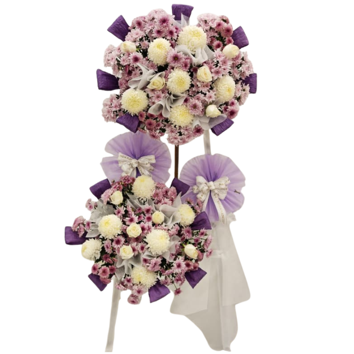 Two tier of wreath with fresh with fresh roses, big mum and chrysans with some greenery.