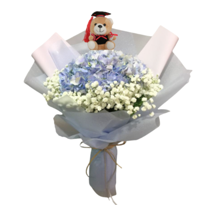 1 Hydrangea Blue+ 1 Bear (M)+ Babybreath