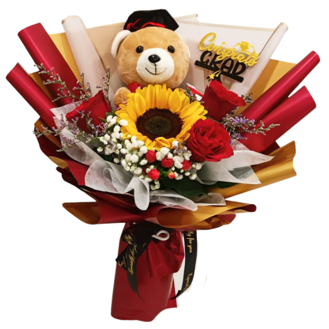 3 Red Roses + 1 Sunflowers + 1 Bear (L)