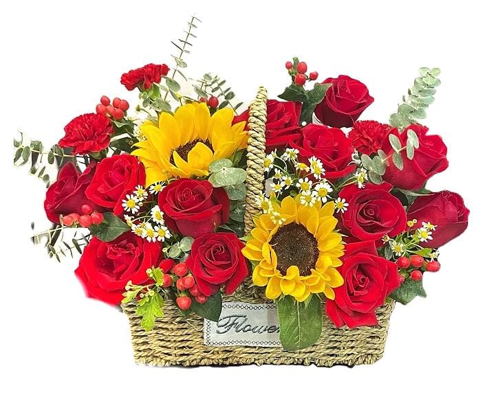 Sunflowers + Red Roses + Red Carnations + Fillers