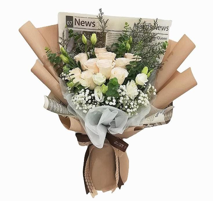10 Stks Import Champagne Roses + Eustomas + Fillers